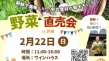 野菜直売会 at ワインハウス センチュリー 芦屋本店 野菜直売会 2025.10.29 2025年11月15日野菜直売会 at ワインハウス センチュリー 芦屋本店11:00 AM - 6:00 PM1981年創業のワイン専門店「ワインハウス センチュリー」さんの軒先でお野菜を販売します。 兵庫県芦屋市東山町7-21 Map野菜直売会
