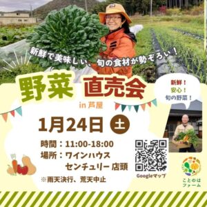 | 19 | 20 | 21 | 22 | 23 | 24野菜直売会 at ワインハウス センチュリー 芦屋本店野菜直売会 at ワインハウス センチュリー 芦屋本店Time: 11:00 AM - 6:00 PM 1981年創業のワイン専門店「ワインハウス センチュリー」さんの軒先でお野菜を販売します。