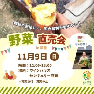 販売会・イベント出店情報 2022.07.302025.10.29 本日の予定 野菜直売会 at ワインハウス センチュリー 芦屋本店11:00 AM - 6:00 PM1981年創業のワイン専門店「ワインハウス センチュリー」さんの軒先でお野菜を販売します。 兵庫県芦屋市東山町7-21 Map 直近の予定 2025年11月9日野菜直売会 at ワインハウス センチュリー 芦屋本店11:00 AM - 6:00 PM1981年創業のワイン専門店「ワインハウス センチュリー」さんの軒先でお野菜を販売します。 兵庫県芦屋市東山町7-21 Map イベントカレンダー < 12月 2025 > 月曜日火曜日水曜日木曜日金曜日土曜日日曜日 1 2 3 4 5 6 7 8 9 10 11 12 13 14 15 16 17 18 19 20 21 22 23 24 25 26 27 28 29 30 31