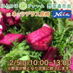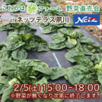 | 1ことのはファーム野菜直売会 at もりさいくることのはファーム野菜直売会 at もりさいくるTime: 2:00 PM - 6:00 PM 西宮北口駅の北西に1kmほど行った場所にある「もりさいくる」さんの軒先での野菜直売会。 14:00〜18:00で開催します! 兵庫県西宮市高木東町23-8 Map | 2 | 3 | 4 | 5ことのはファーム野菜直売会 at ネッツテラス尼崎ことのはファーム野菜直売会 at ネッツテラス尼崎Time: 10:00 AM - 1:00 PM![]() ![]() 基本は毎週土曜日の開催ですが、都合により日曜開催、もしくは中止の場合もあります。 開催日はHP/SNS/店内掲示をご確認ください。 兵庫県西宮市城ヶ堀町1番21号 Map | 6 | ||||